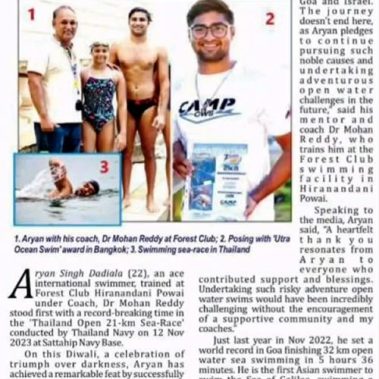 On August 15th, India celebrated a proud moment as the first and fastest Asian swimmer, Aryan Dadiala, captured the spotlight. The achievement not only brought honour to the nation but also highlighted the strength and determination of its people. This remarkable milestone was recognized on a global stage, making it a moment of immense pride…